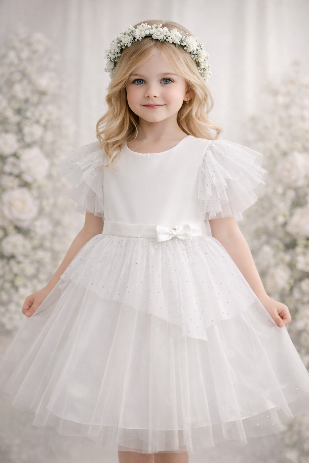 Biała sukienka dla dziewczynki z tiulem OLIWIA