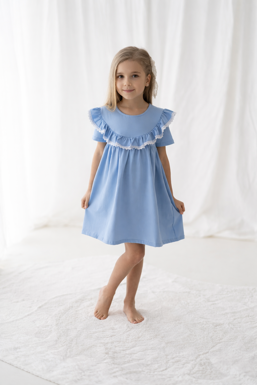 Błękitna sukienka dla dziewczynki MOLLY z krótkim rękawkiem