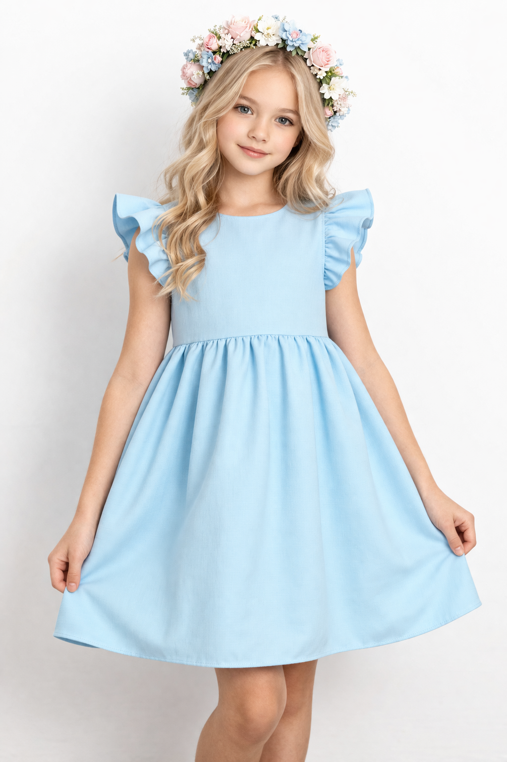 Błękitna sukienka dla dziewczynki z falbanką LITTLE WINGS