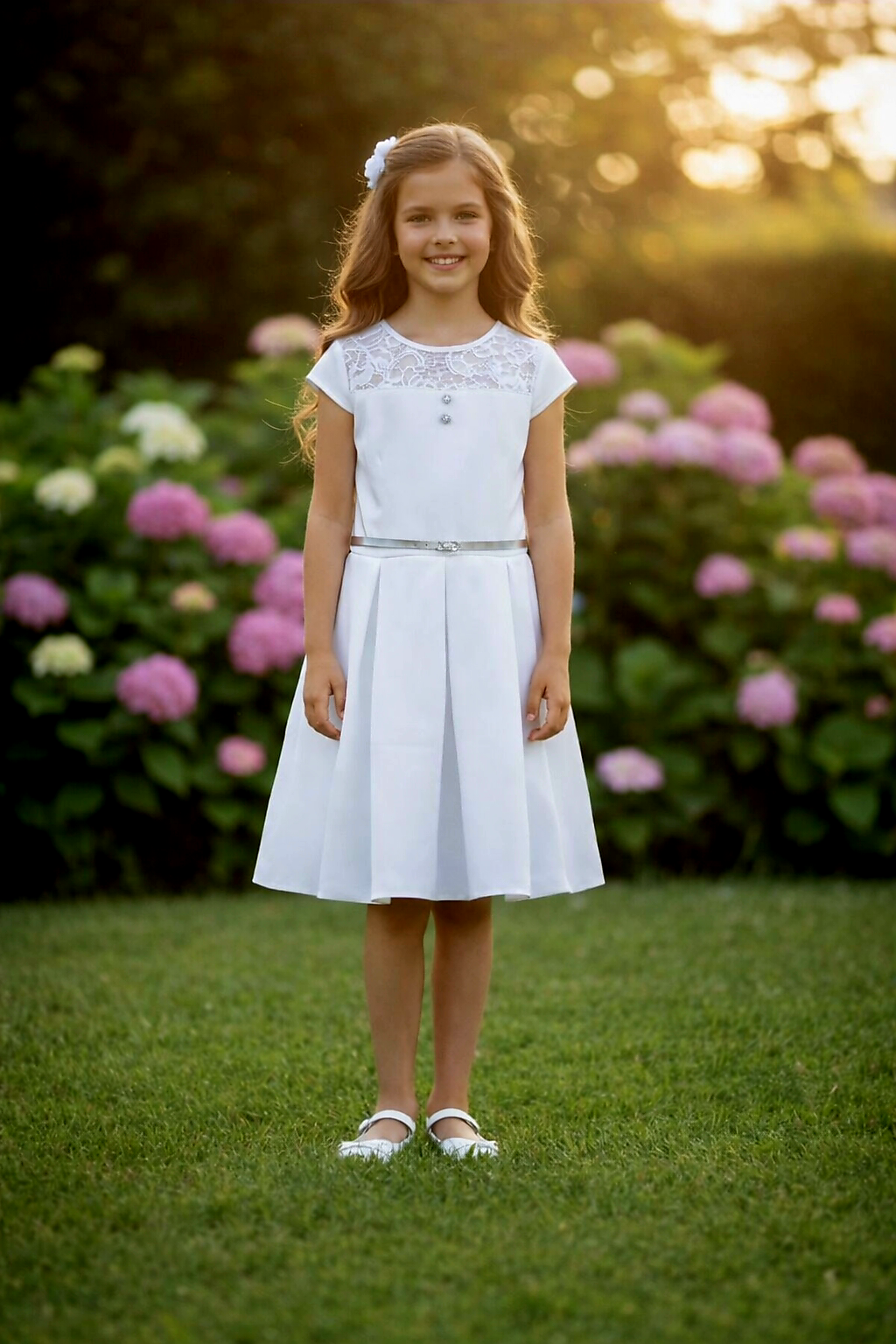 KOLEKCJA BASIC Sukienka komunijna dla dziewczynki w kolorze ecru DOROTKA