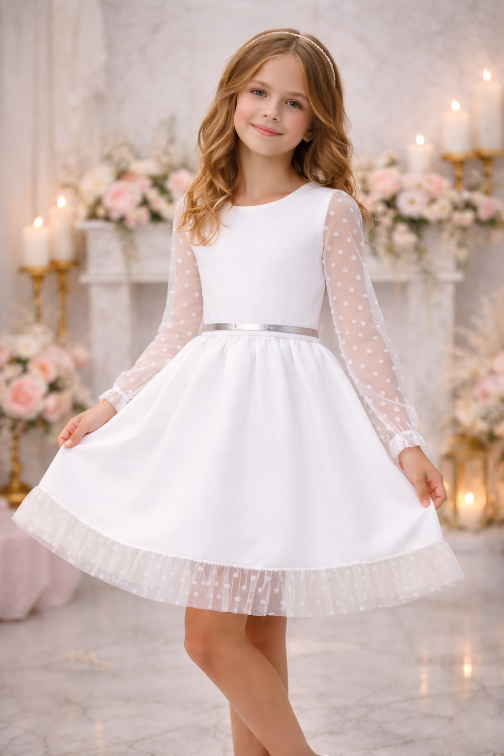 KOLEKCJA BASIC Sukienka komunijna dla dziewczynki z połyskującymi drobinkami w kolorze ecru DANUSIA