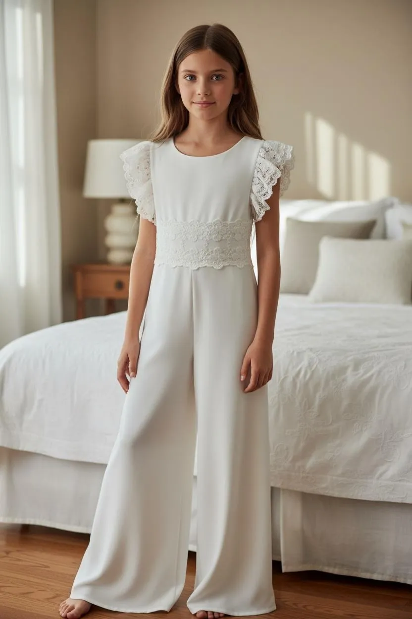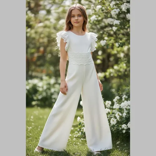 Kombinezon wizytowy dla dziewczynki w kolorze ecru