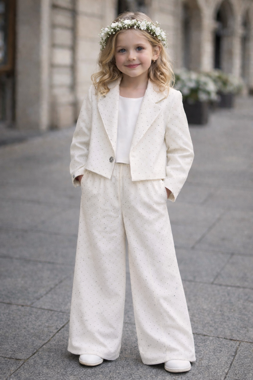 Komplet wizytowy dla dziewczynki w kolorze ecru z cyrkoniami