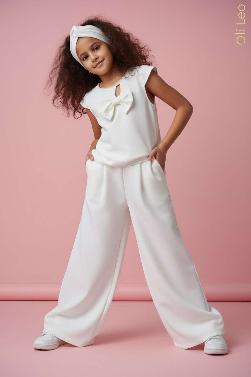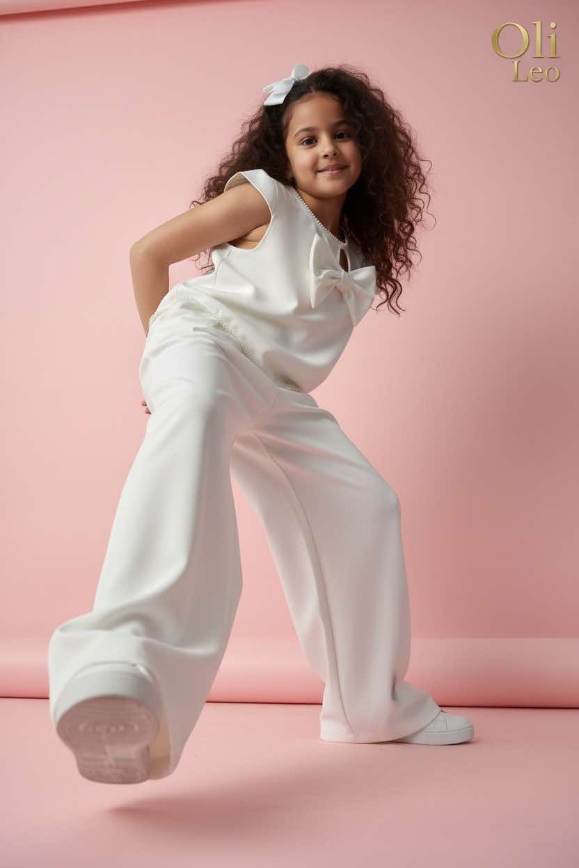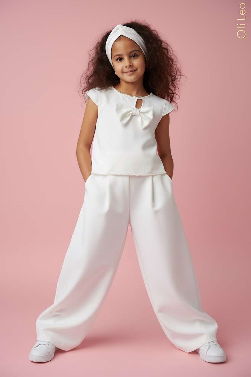 Komplet wizytowy dla dziewczynki w kolorze ecru z kokardką