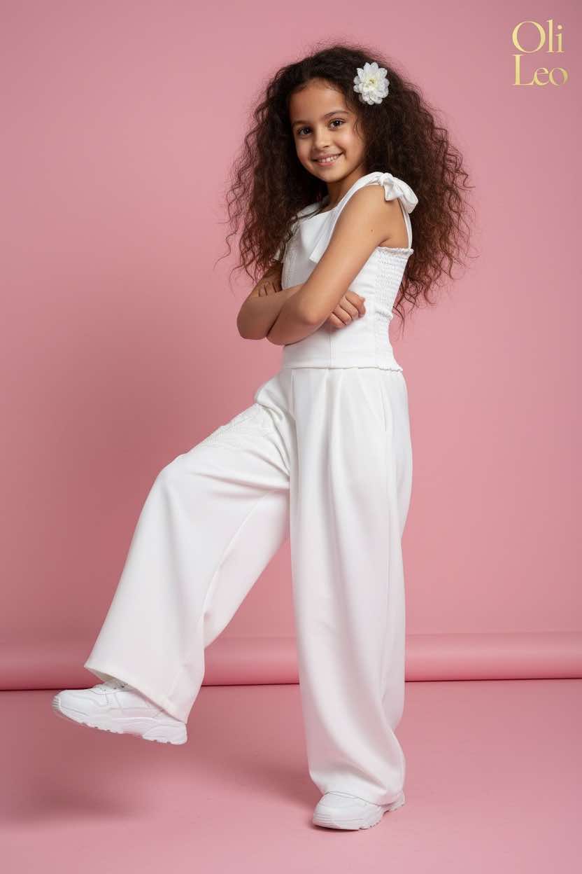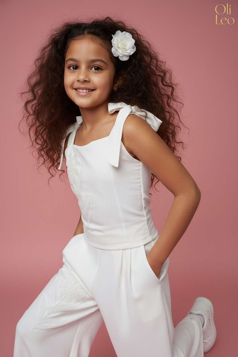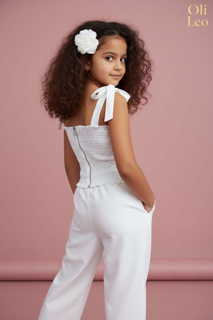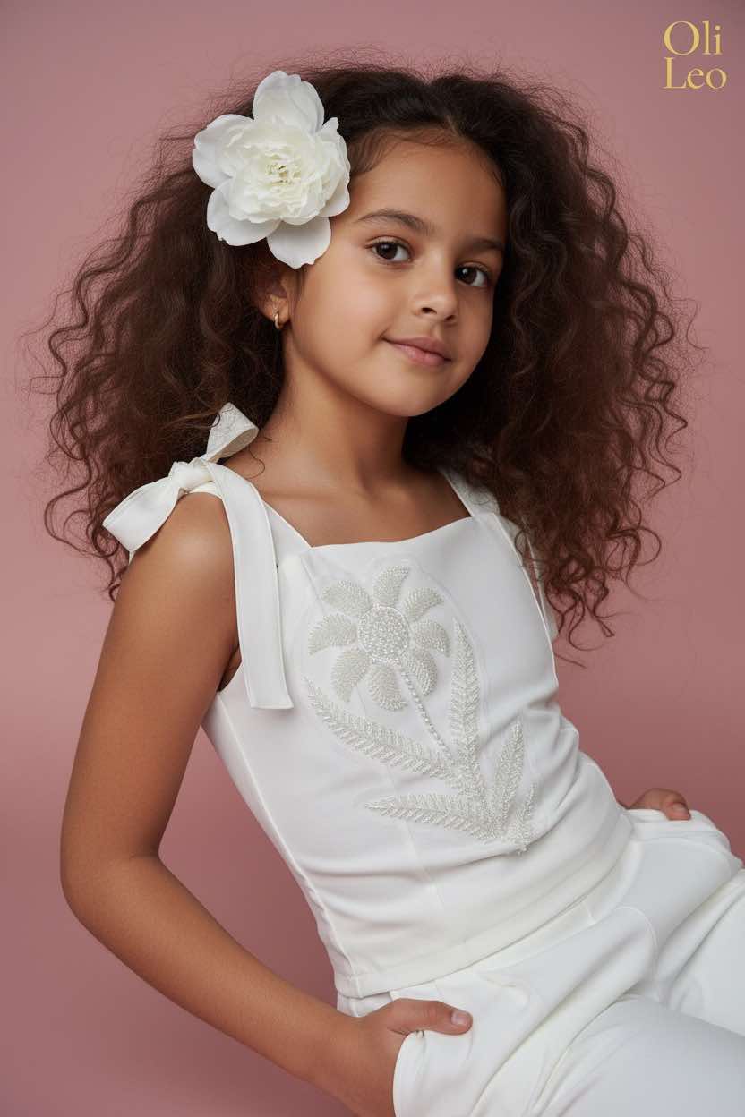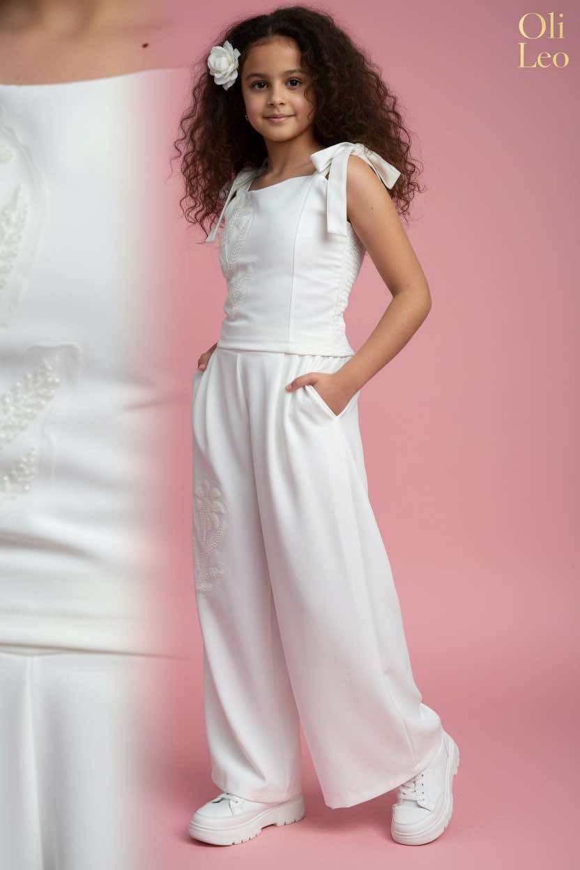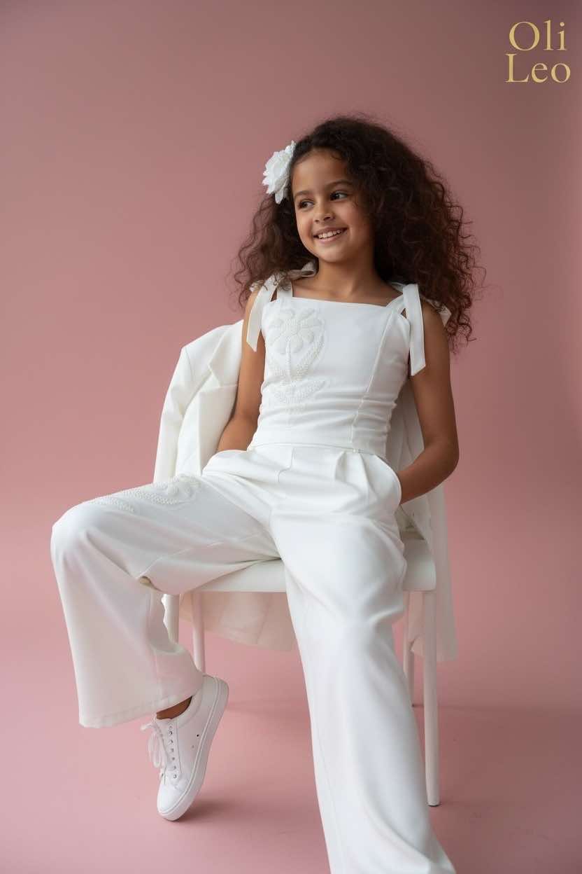 Komplet wizytowy dla dziewczynki w kolorze ecru z kwiatem