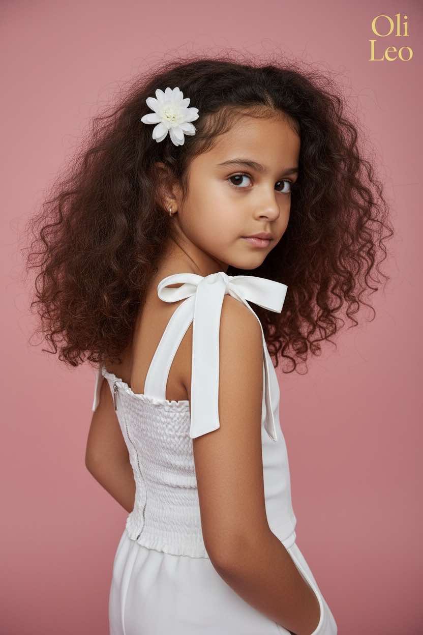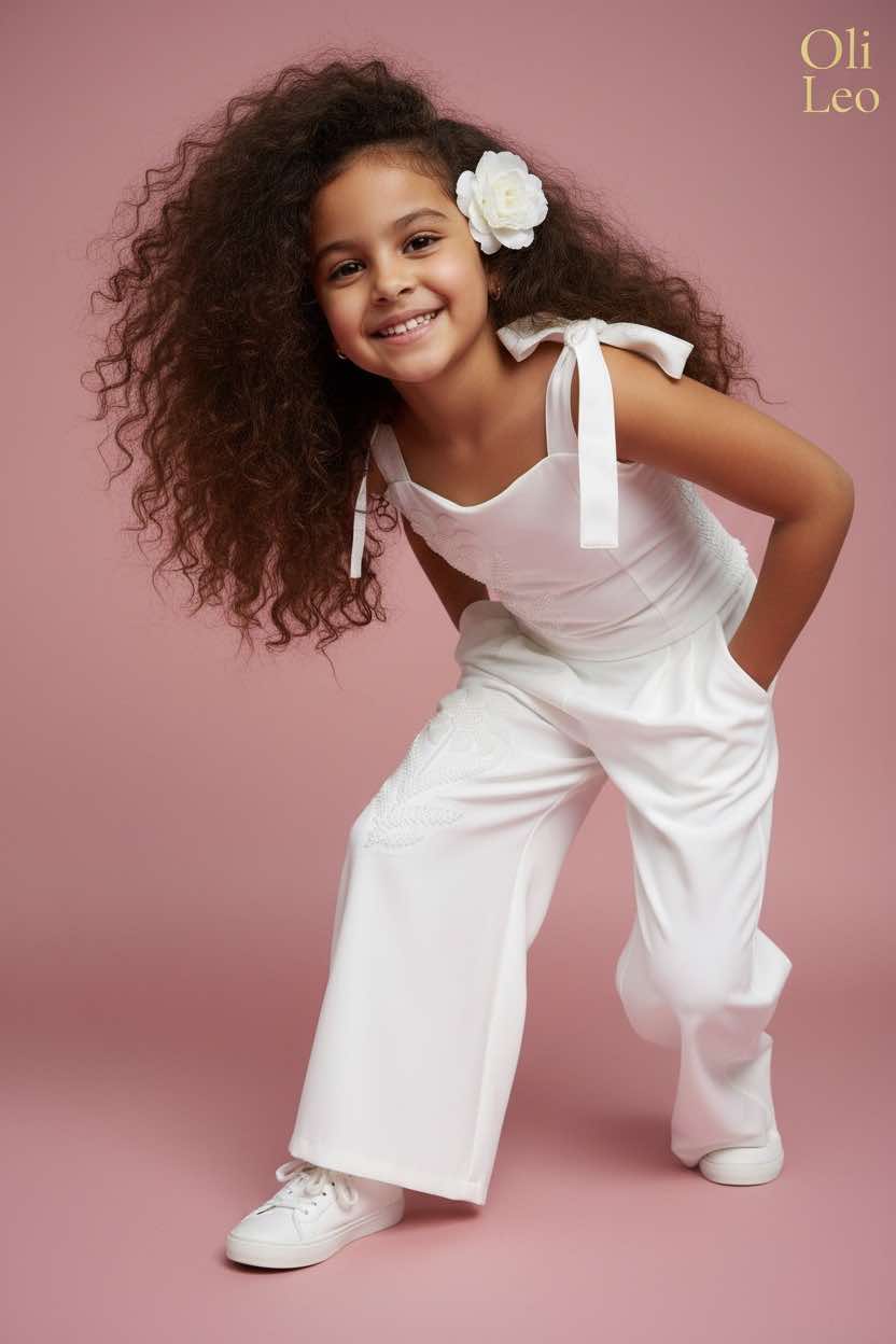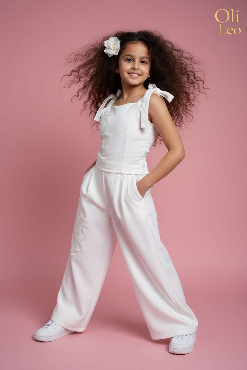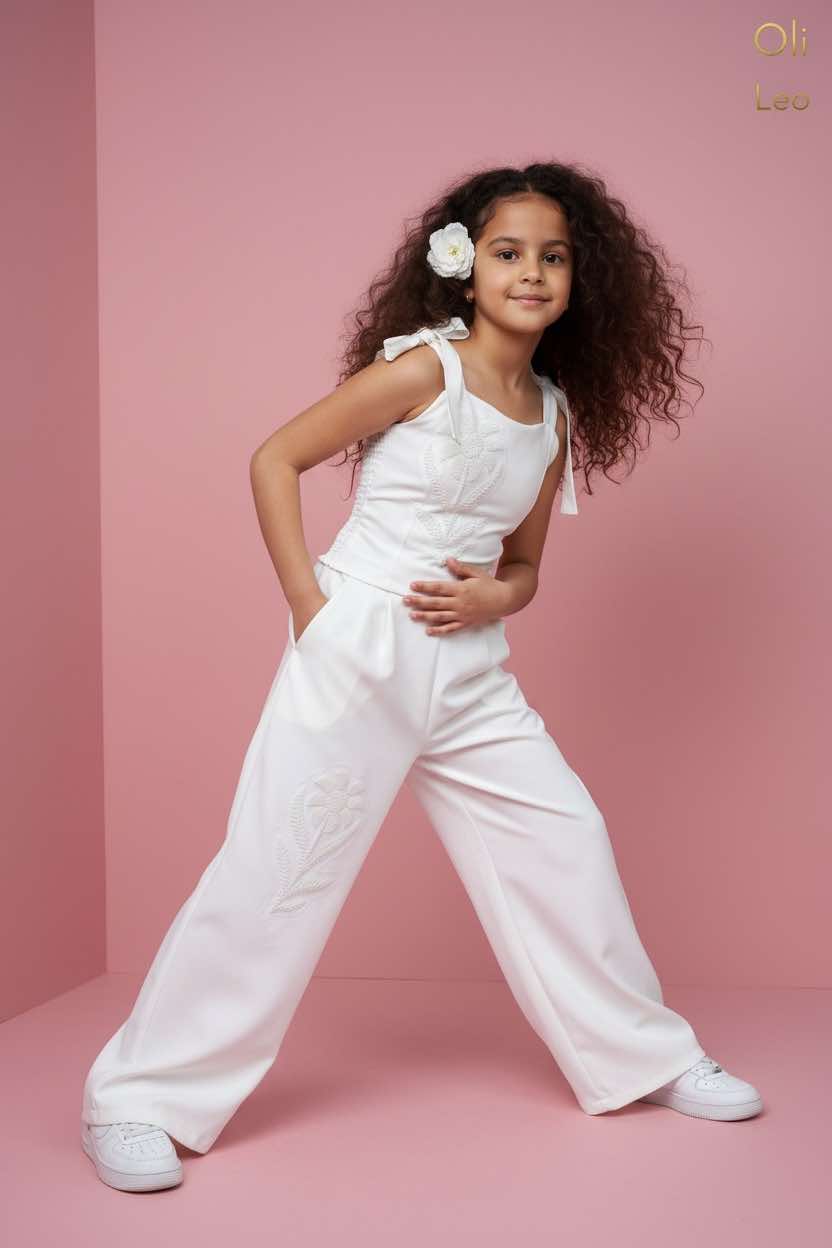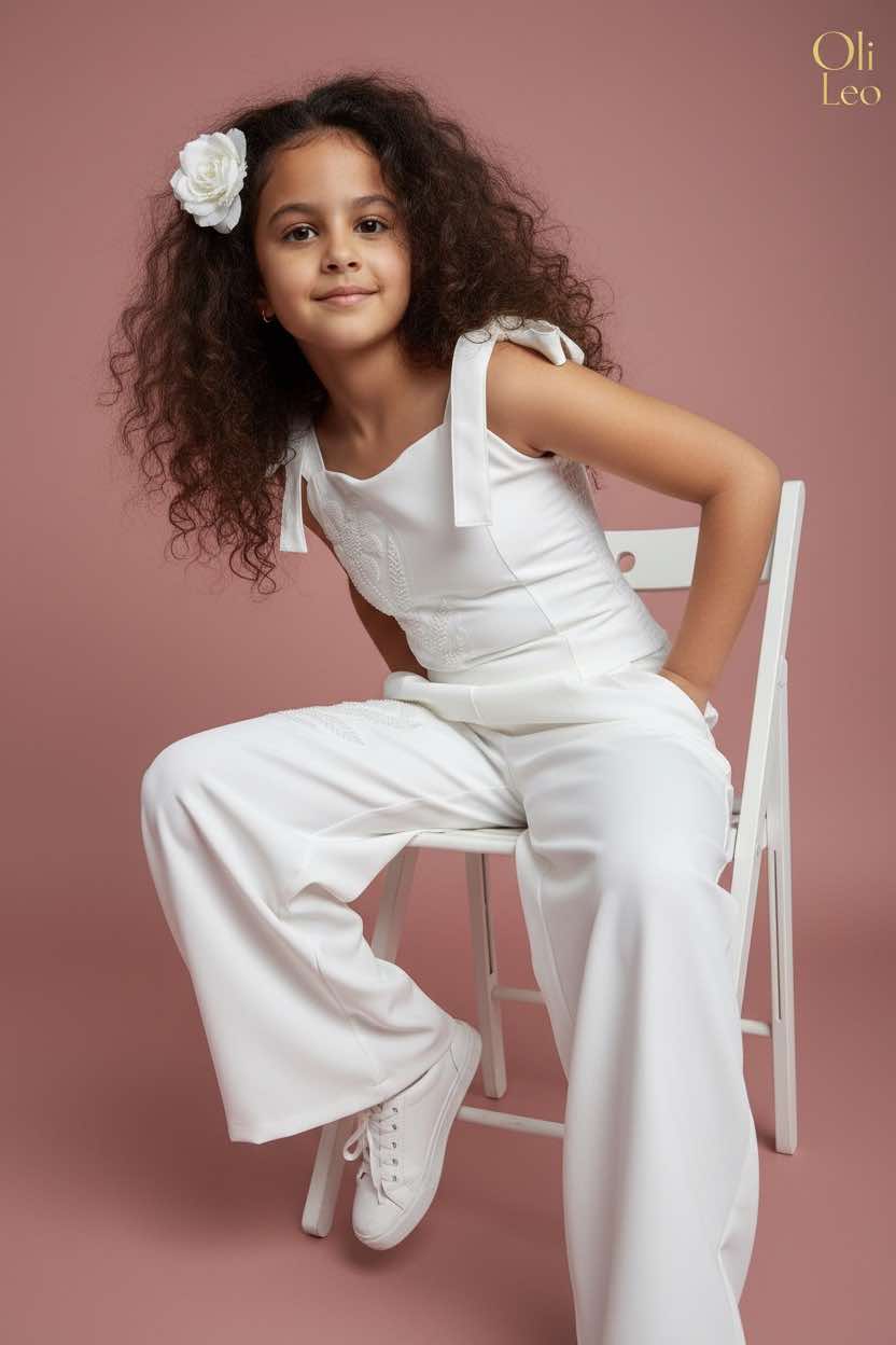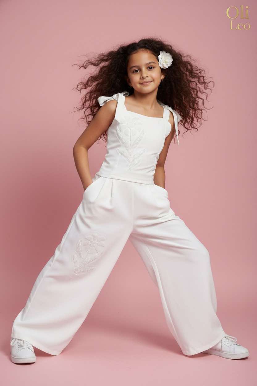 Komplet wizytowy dla dziewczynki w kolorze ecru z kwiatem