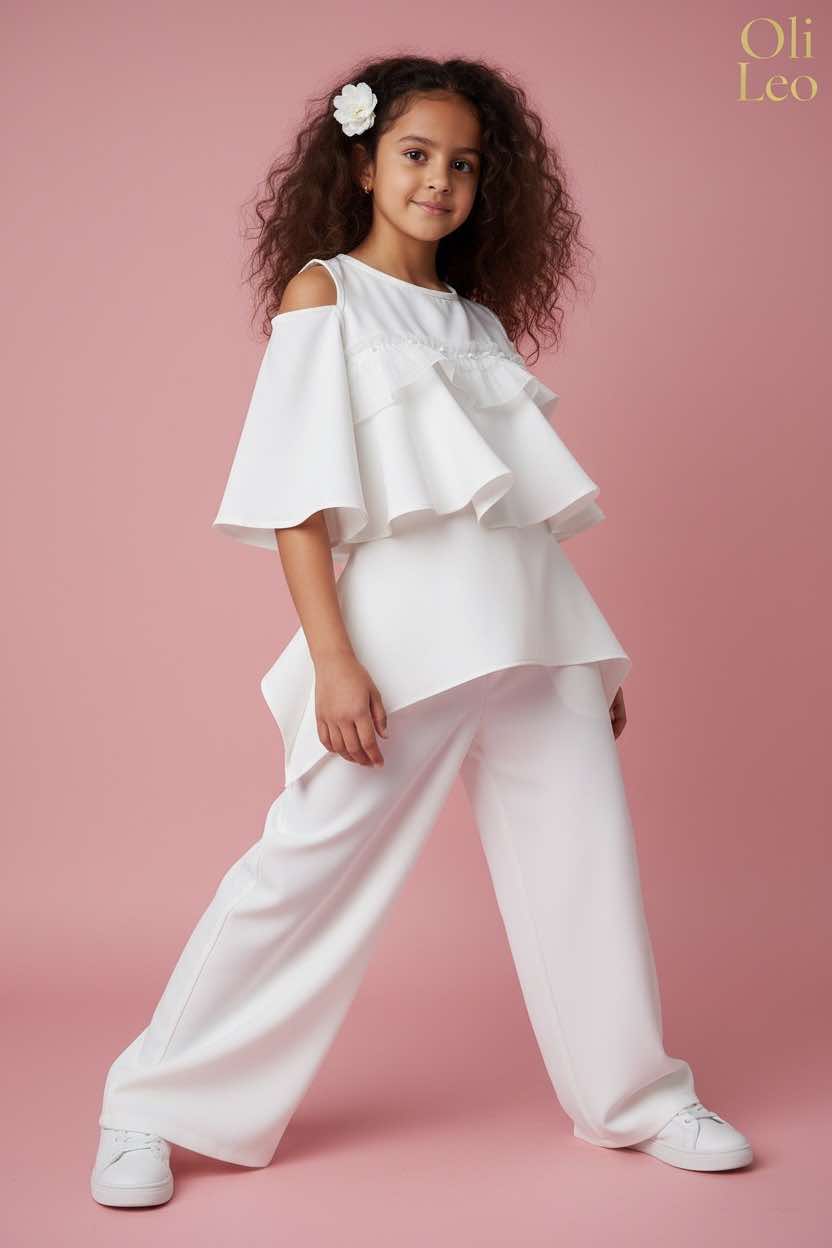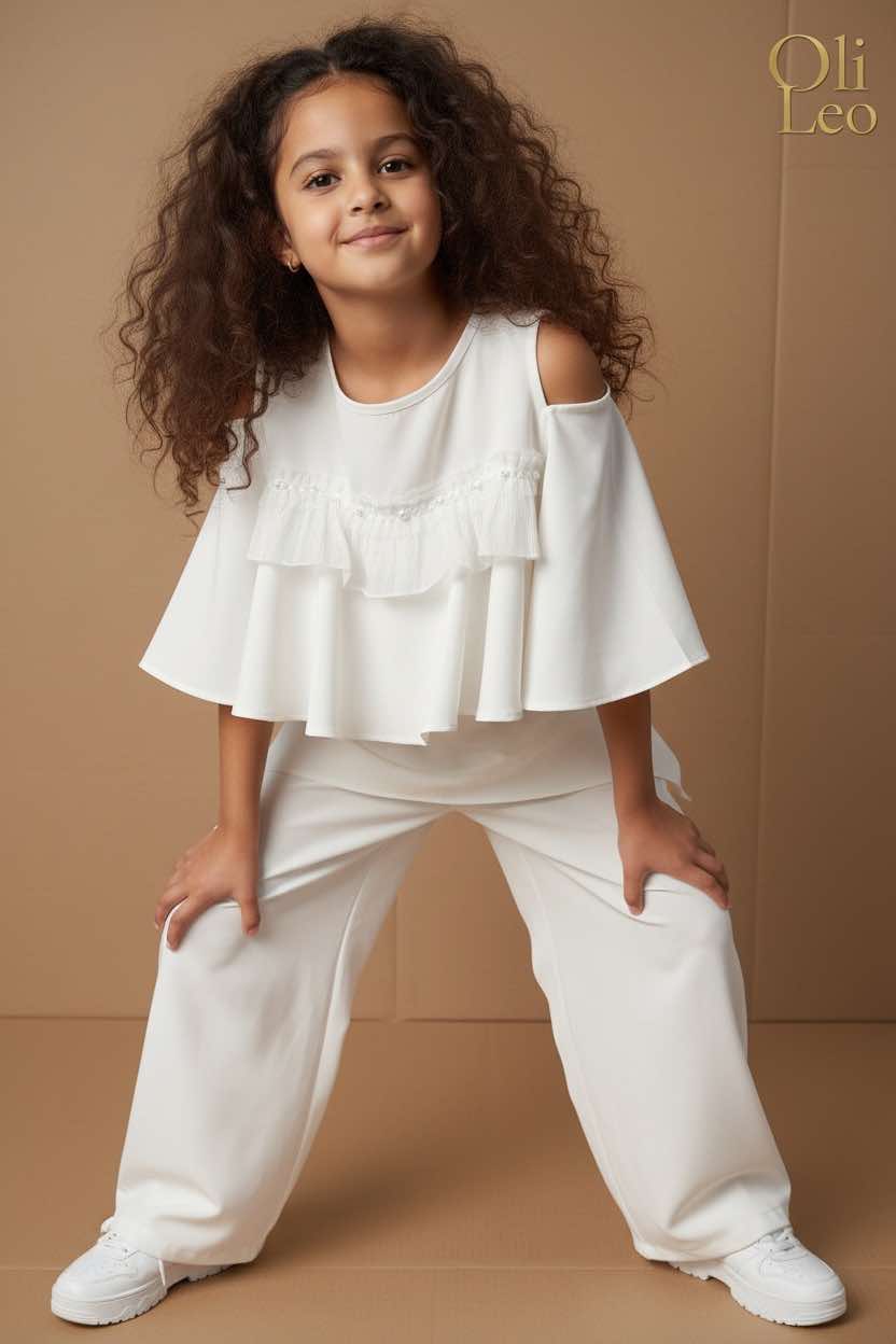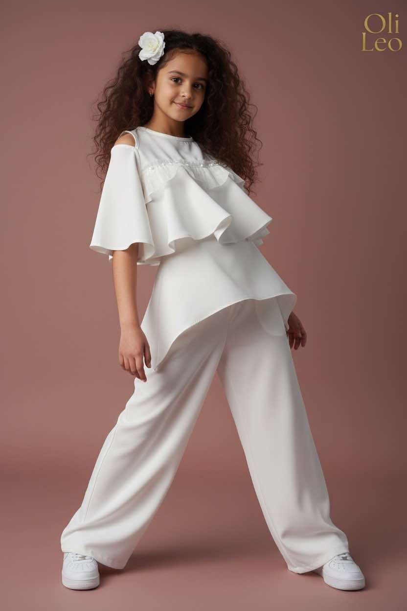 Komplet wizytowy dla dziewczynki w kolorze ecru