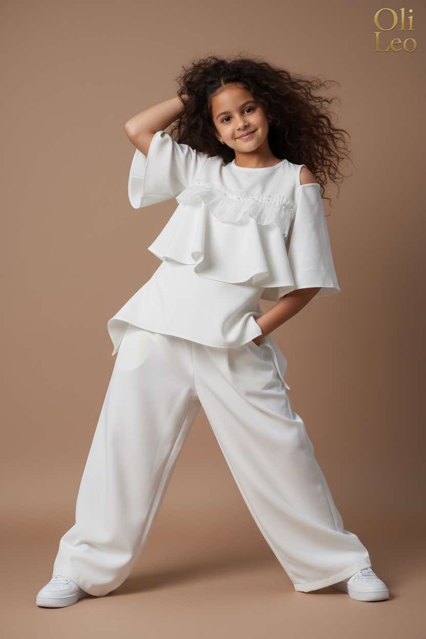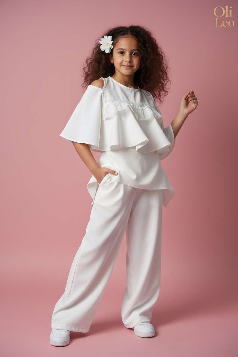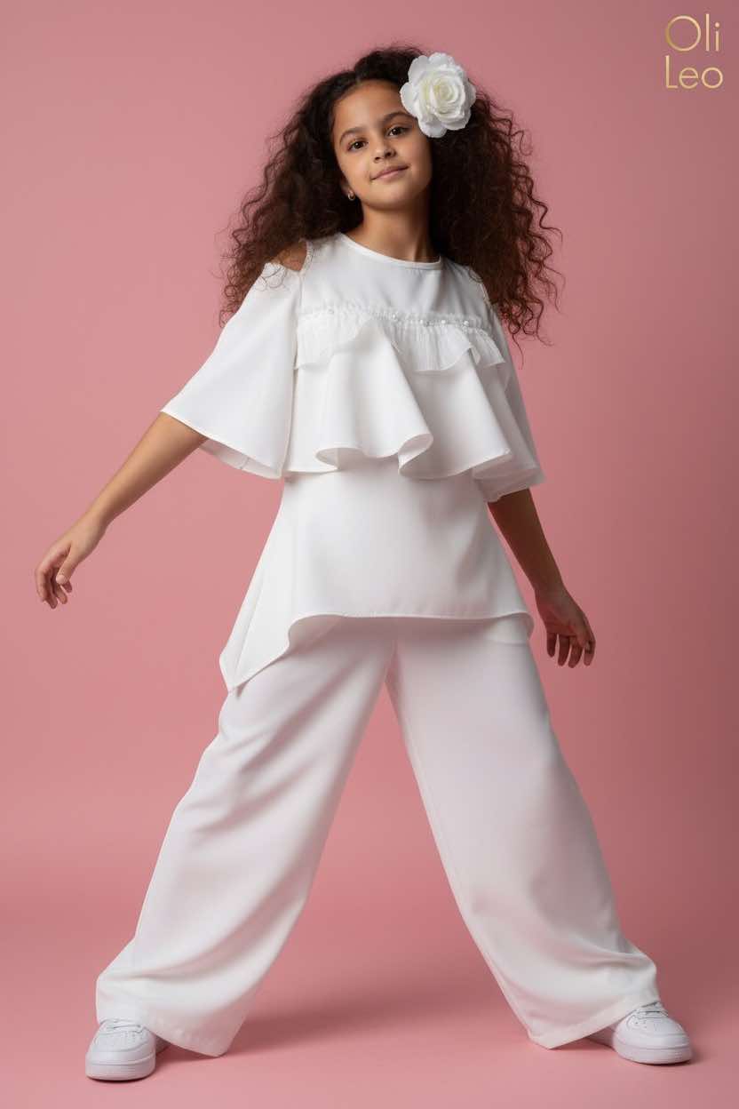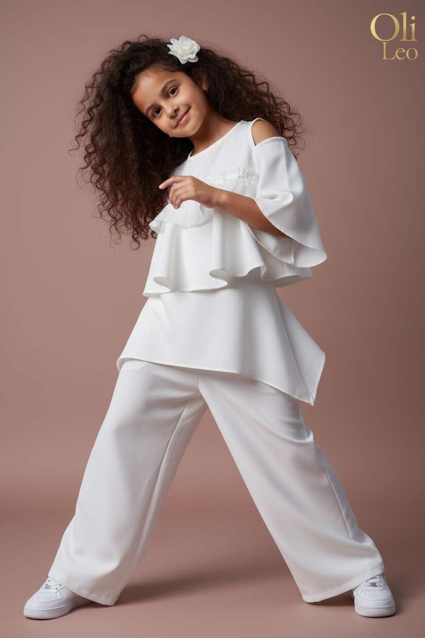 Komplet wizytowy dla dziewczynki w kolorze ecru